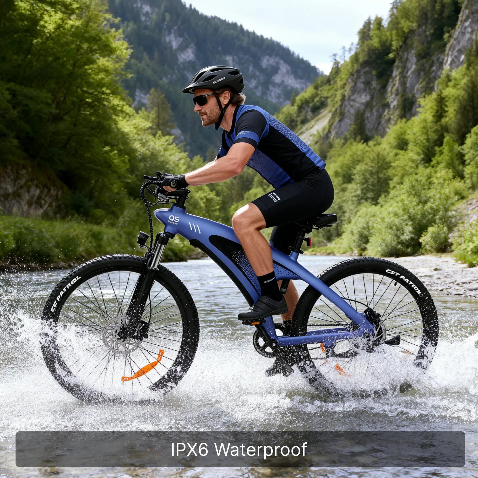 - Water & Harsh Weather Performance: With IPX6-rated full-bike sealing (motor, battery, wiring all multi-sealed), it works reliably in rain, shallow streams, or muddy terrain. Brake return and suspension travel remain unaffected by water or mud.