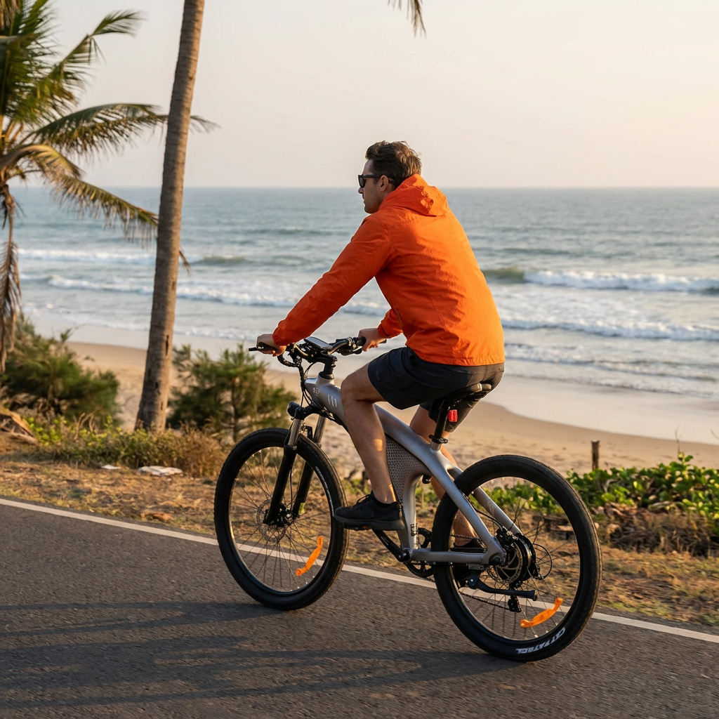 Designed for relaxed riding, this electric bike is ideal for coastal paths, bike lanes, and everyday routes, offering comfort and efficiency for longer rides.